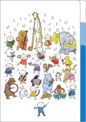 子供や動物たちがいろいろな楽器を楽しそうに演奏しています。