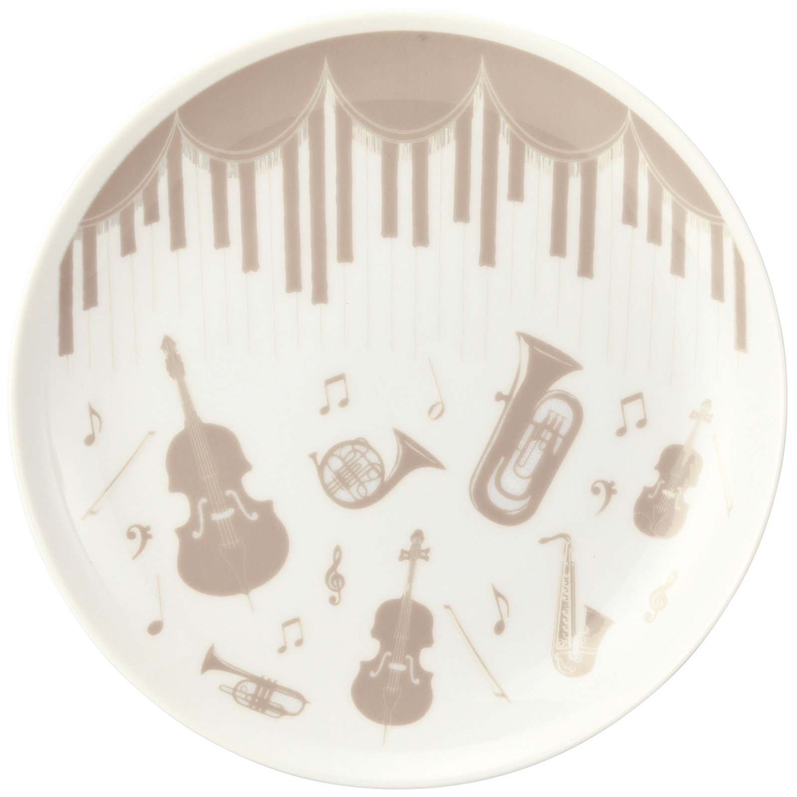 淡いモカ色でカーテン幕と楽器がデザインされています。
