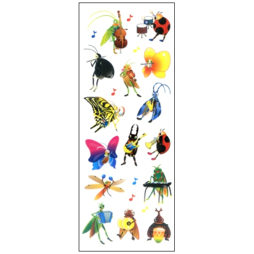 虫たちが楽器を演奏しているラメ入りシール。