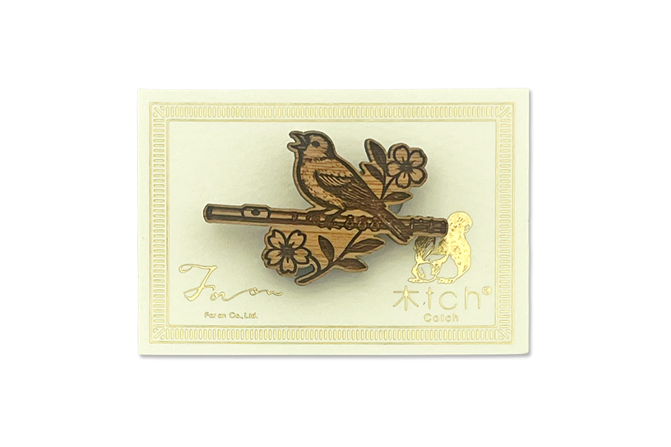 「木tch(コッチ)」シリーズより管楽器のブローチ。