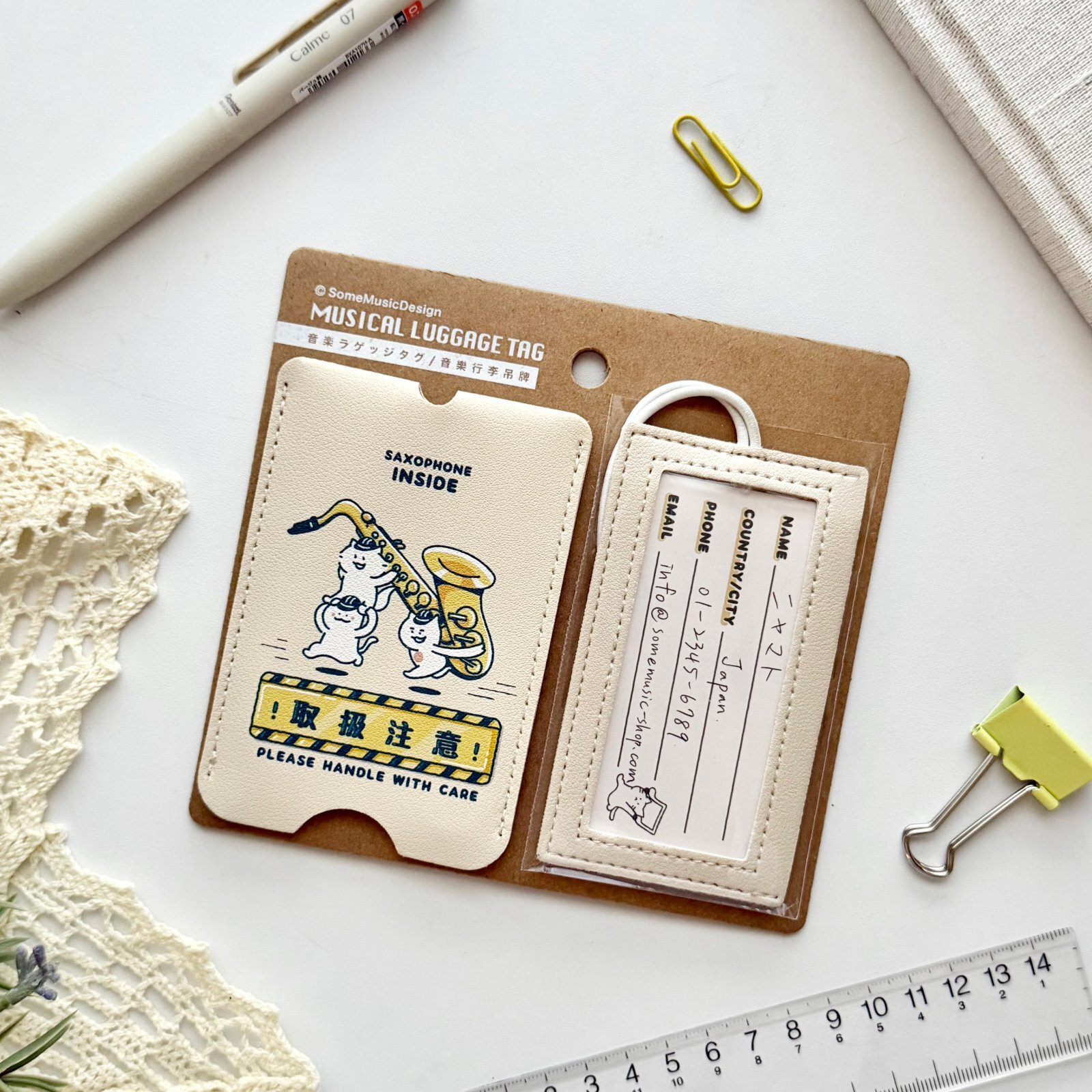 SomeMusicDesign 音楽ラゲッジタグ サクソフォン ◇ゆうパケット発送可