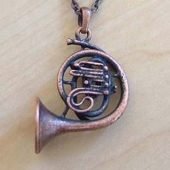 ホルンのチャームが付いたペンダントのゴールド(写真右)。
