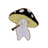 動物シリーズのブローチ。 こちらはキノコをかぶった猫?がホルンを演奏しています。 □サイズ:28mmx26mm □素材:金属 ◆登録番号 PT03336