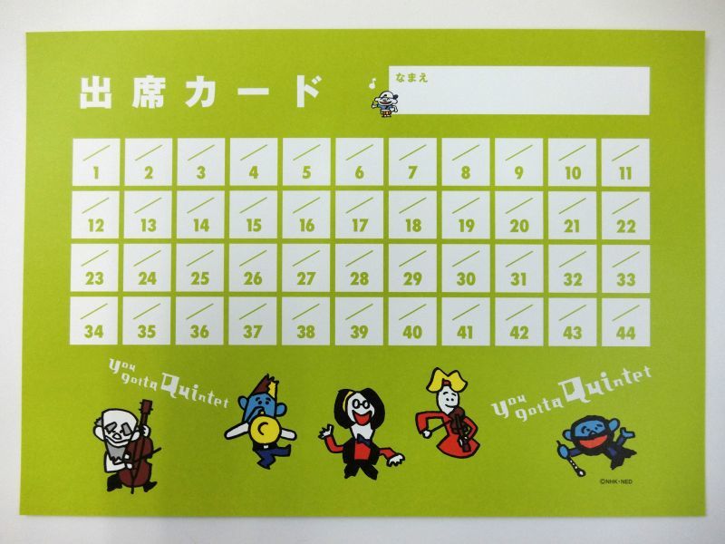 クインテットの出席カード。
